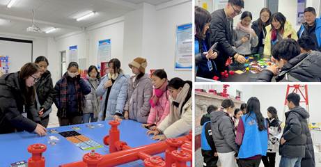讲解结束后,同学们分组参与了“石油储运大亨桌游”和“油田淘金记”等互动游戏,在体验中进一步理解石油工业流程。最后,大家在实验室自由参观、交流,并在主题打卡墙前拍照留念,现场气氛热烈。同学们纷纷表示:“Today we visited the Northeast Petroleum University's site outreach program and we had so much fun today learning well.”